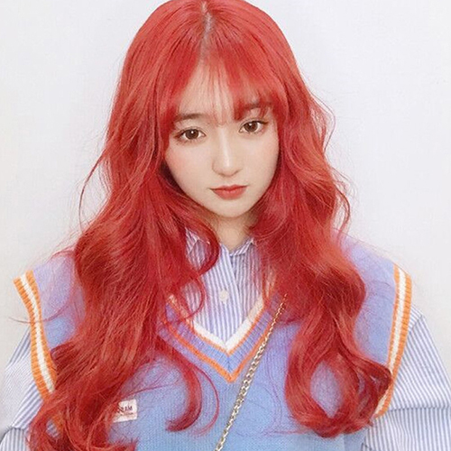 成人娃娃裝扮假髮 ‧ 空氣瀏海大波浪長捲髮 / 紅色