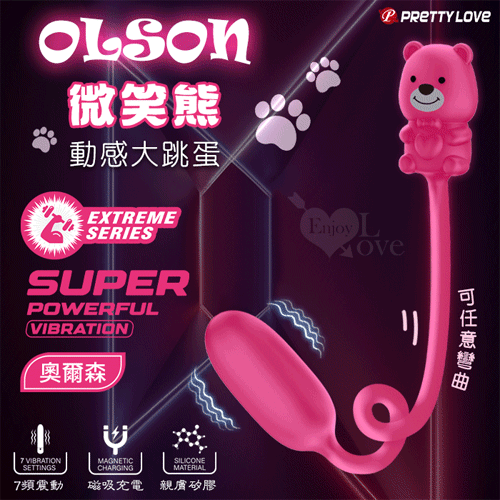 首頁 > 跳蛋專區 > 有線跳蛋 > 派蒂菈 ‧ OLSON 奧爾森 微笑熊 動感大跳蛋﹝7頻強勁震動+親膚矽膠+USB磁吸充電﹞【特別提供保固六個月】
