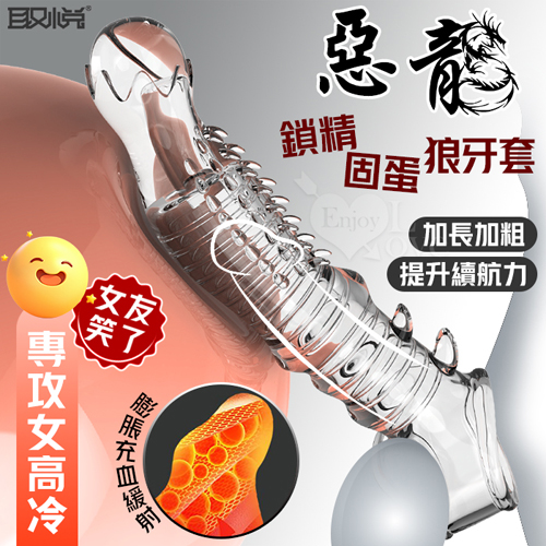 取悅 ‧ 惡龍加長狼牙套-鎖精固蛋加粗延長7公分~層次深入 專攻女高冷﹝透明色﹞